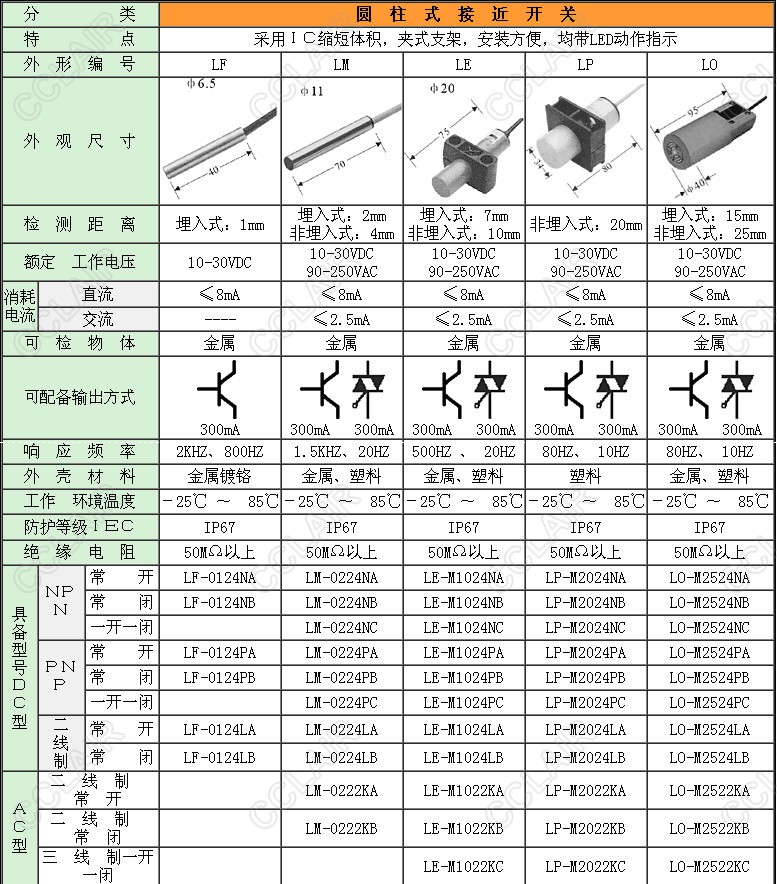 LF-0124NA,LM-0224NA,LE-M1024NA,LP-M2024NA,LO-M2524NA,LF-0124NB,LM-0224NB,LE-M1024NB,圓柱式接近開關(guān)