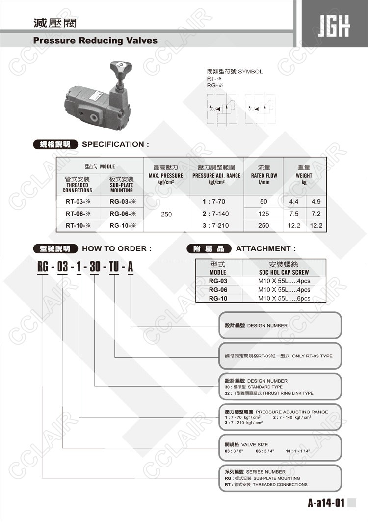 JeouGang臺灣久岡,減壓閥RG-03-1-30-TU-A,RG-03-1-32-TU-A,RG-06-3-30-TU-A,RG-06-3-32-TU-A,RG-10-1-30-TU-A,RG-10-1-32-TU-A,RT-06-3-30-TU-A,RT-06-3-32-TU-A,RT-10-1-30- TU-A,RT-10-1-32-TU-A,RT-10-2-30-TU-A,RT-10-3-30-TU-A,RT-10-3-32-TU-A