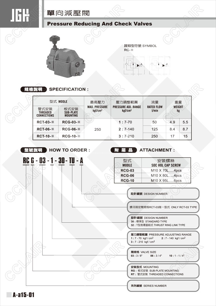 JeouGang臺灣久岡,單向減壓閥RCG-03-1-30-TU-A,RCG-03-1-32-TU-A,RCG-06-3-30-TU-A,RCG-06-3-32-TU-A,RCG-10-1-30-TU-A,RCG-10-1-32-TU-A,RCT-03-3-30-TU-A,RCT-03-3-32-TU- A,RCT-06-1-30-TU-A,RCT-06-1-32-TU-A,RCT-06-2-30-TU-A,RCT-06-3-32-TU-A