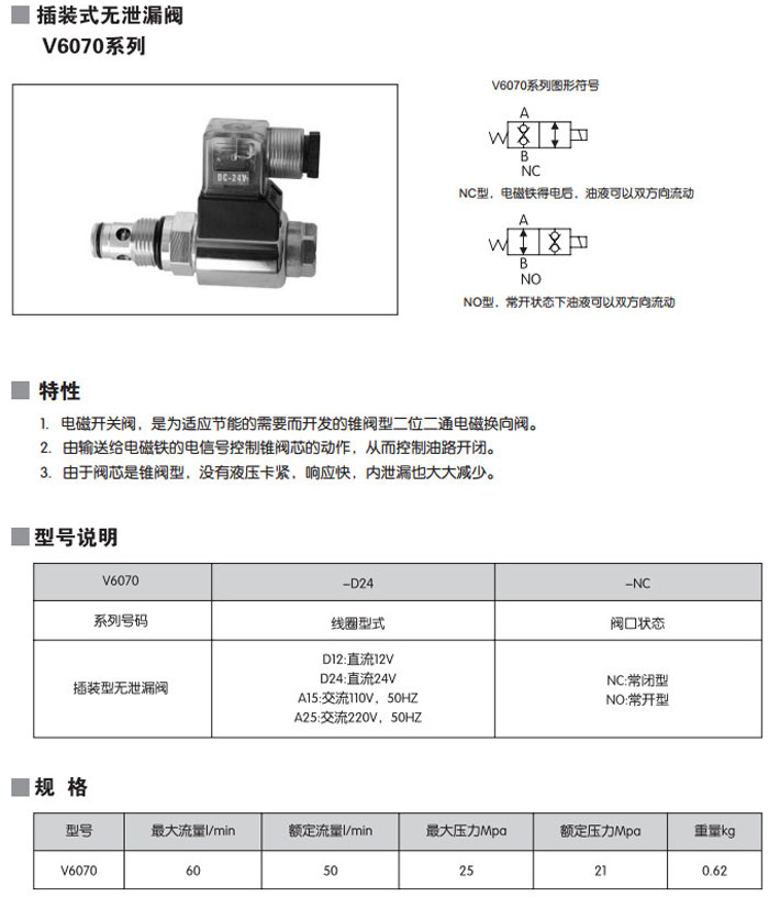 V6070-D24-NC,V6070-D24-NO,V6070-D12-NC,V6070-D12-NO,V6070-A15-NC,V6070-A15-NO,插裝式無泄漏閥 詳細(xì)信息 V6070-D24-NC,V6070-D24-NO,V6070-D12-NC,V6070-D12-NO,V6070-A15-NC,V6070-A15-NO,插裝式無泄漏閥