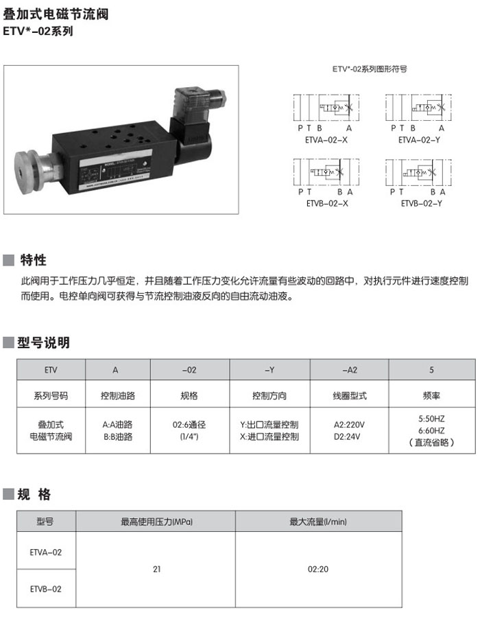 ETVA-02,ETVB-02,ETVA-02-X-A2,ETVB-02-X-A2,ETVA-02-Y-D2,ETVB-02-Y-D2,疊加式電磁節(jié)流閥