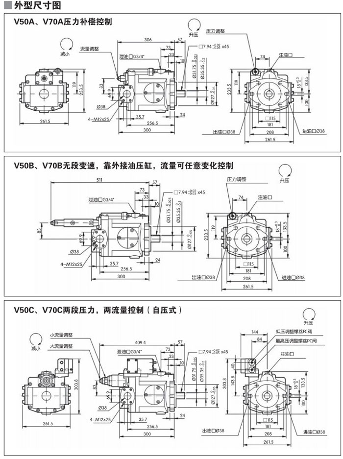 V15,V18,V23,V25,V38,V42,V50,V70,V15A1RBS-A,V23A1RB-F,V50A1RB2-A,變量柱塞泵