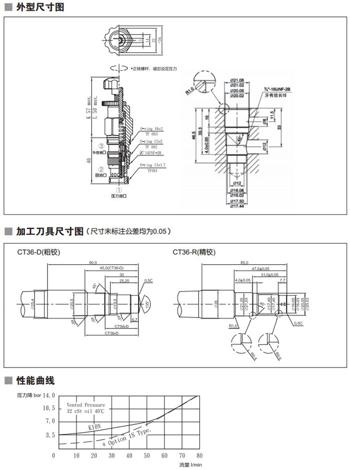 CVR-063-L10N,CVR-063-K10N,CVR-063-L20N,CVR-063-L30N,CVR-063-L1SN,CVR-063-L2SN,螺紋插裝式先導式溢流閥