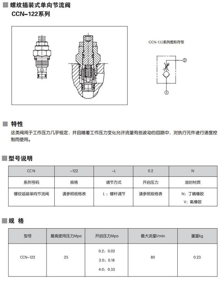 CCN-122-L0.2N,CCN-122-L2.0N,CCN-122-L4.0N,CCN-122-L0.2V,CCN-122-L2.0V,CCN-122-L4.0V,螺紋插裝式單向節(jié)流閥 詳細信息 CCN-122-L0.2N,CCN-122-L2.0N,CCN-122-L4.0N,CCN-122-L0.2V,CCN-122-L2.0V,CCN-122-L4.0V,螺紋插裝式單向節(jié)流閥