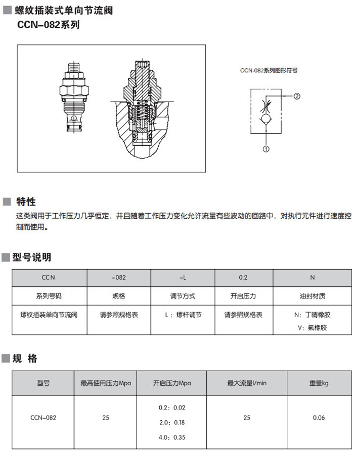 CCN-082-L0.2N,CCN-082-L0.2V,CCN-082-L2.0N,CCN-082-L2.0V,CCN-082-L4.0N,CCN-082-L4.0V,螺紋插裝式單向節(jié)流閥 詳細信息 CCN-082-L0.2N,CCN-082-L0.2V,CCN-082-L2.0N,CCN-082-L2.0V,CCN-082-L4.0N,CCN-082-L4.0V,螺紋插裝式單向節(jié)流閥