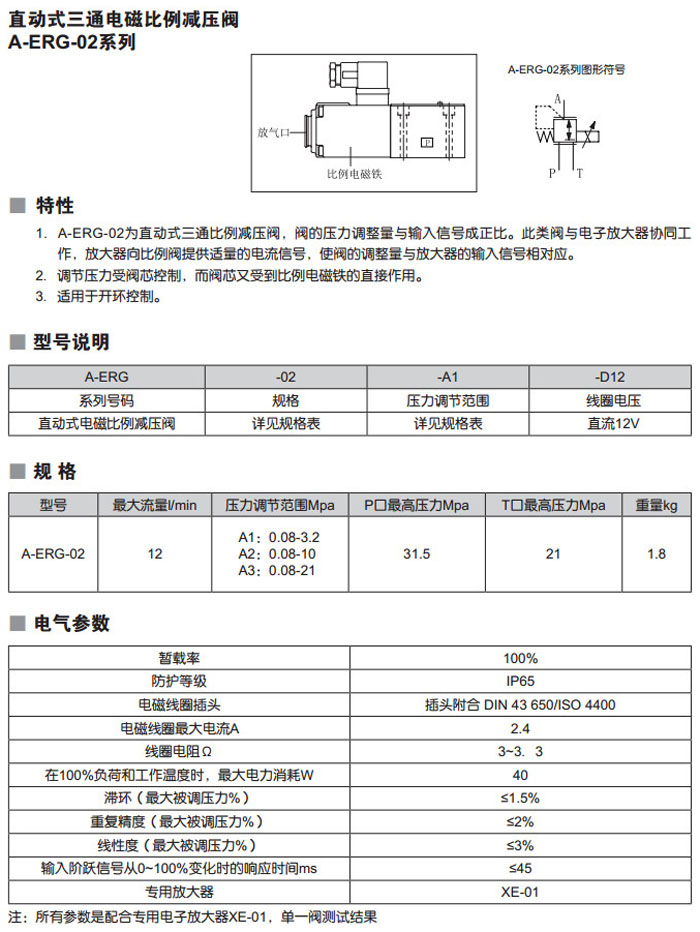 A-ERG-02-A1-D12,A-ERG-02-A2-D12,A-ERG-02-A3-D12,直動(dòng)式三通電磁比例減壓閥