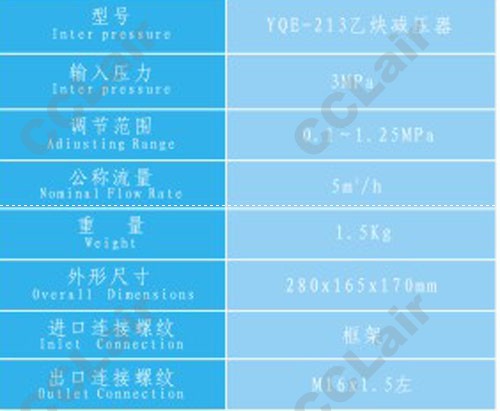 產(chǎn)品: 瀏覽次數(shù):583YQE-213,乙炔減壓器,CCLair