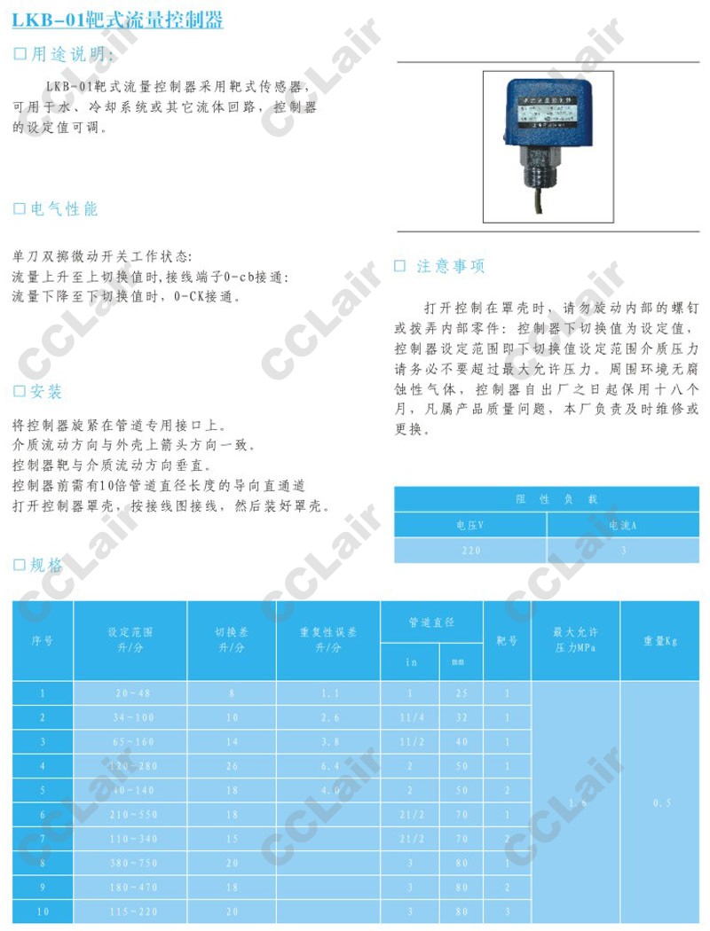 » LKB-01,靶式流量控制器,CCLair