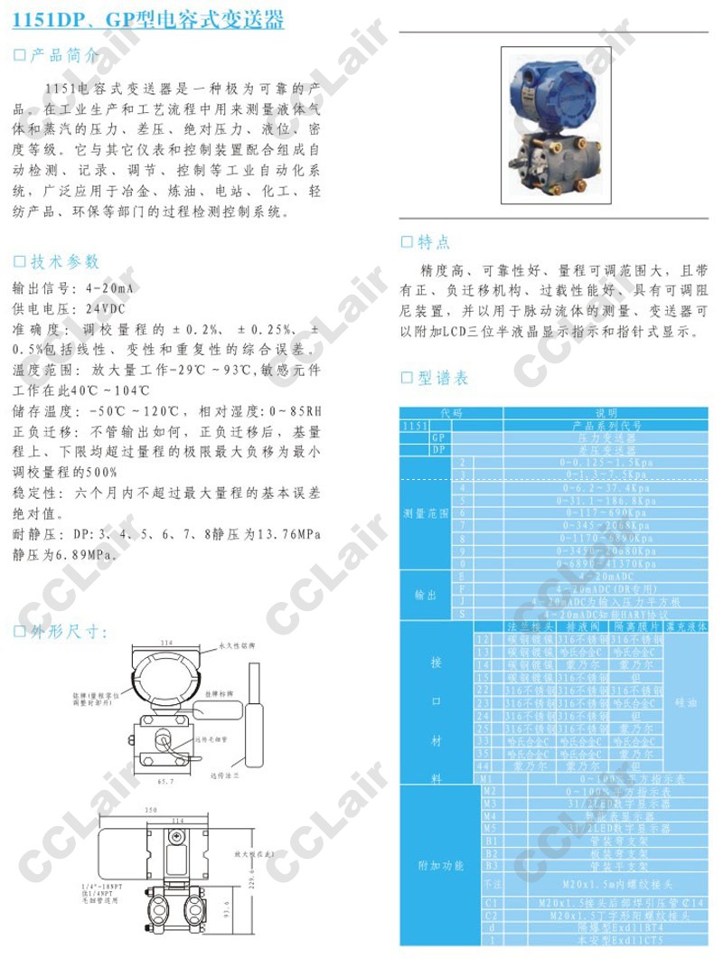 詳細(xì)信息 1151DP,1151GP,電容式變送器,CCLair