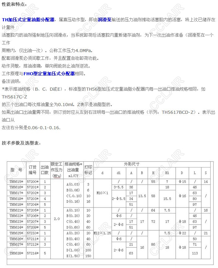 TH5615A-Z,TH5616A-Z,TH5617A-Z,TH5619C-Z,TH5618A-Z,TH5621A-ZTH5622AB-Z,加壓式定量油脂分配器