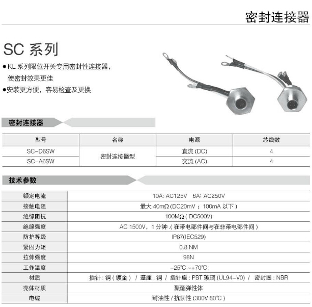 詳細(xì)信息 SC-D6SW,SC-A6SW,Koino密封連接器