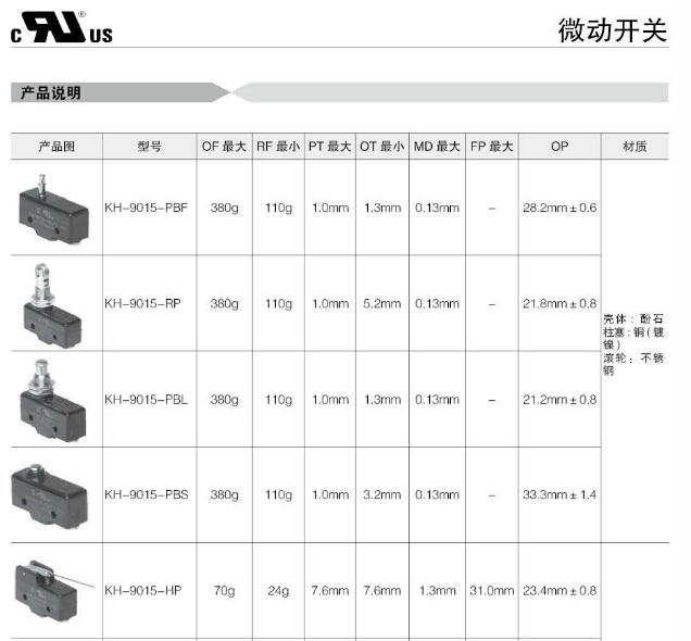 詳細(xì)信息 KH-9015-PBF,KH-9015-RP,KH-9015-PBL,KH-9015-PBS,KH-9015-HP,KH-9015-CRP,KH-9015-HL,Koino微動(dòng)開(kāi)關(guān)