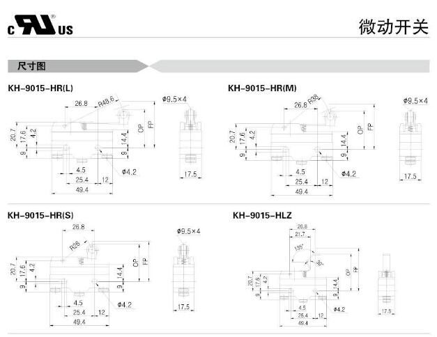 KH-9015-PBF,KH-9015-RP,KH-9015-PBL,KH-9015-PBS,KH-9015-HP,KH-9015-CRP,KH-9015-HL,Koino微動(dòng)開(kāi)關(guān)