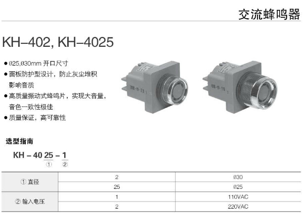 KH-402-1,KH-4025-1,KH-402-2,KH-4025-2,Koino交流蜂鳴器