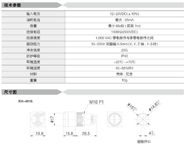 詳細信息 KH-4016,KH-4016-D,KH-4016-DS,KH-4016-DR,KH-4016-F,KH-4016-FS,KH-4016-FR,KH-4016-S,KH-4016-R,Koino直流蜂鳴器