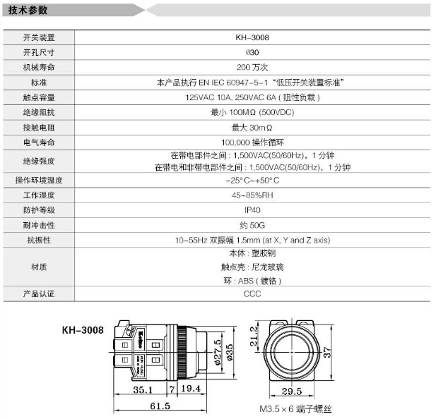 » KH-3008,Koino Φ30重負荷開關(guān)