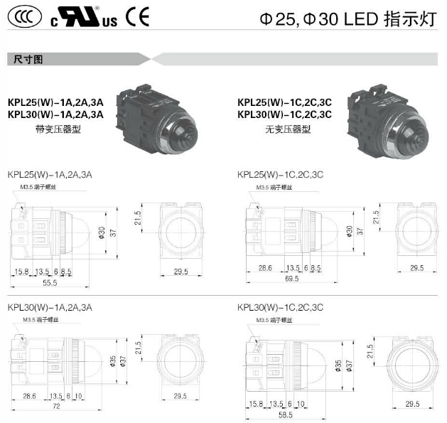 KPL25-1A,KPL30-1A,KPL25W-2A,KPL30W-2A,KPL25-3C,KPL30W-3C,KPL30-1C,Koino LED指示燈