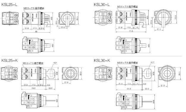 詳細信息 KSL25S2,KSL25AS2,KSL25RS3,KSL30S2,KSL30AS2,KSL30RS3,KSL25WS2,KSL30WAS2,KSL25S2-L2A,Koino選擇開關