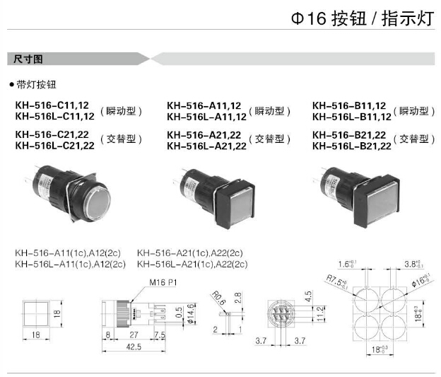 KH-516-A11,KH-516-B11,KH-516-C11,KH-516-D31,KH-516-A12,KH-516-B12,KH-516-C12,KoinoΦ16按鈕燈