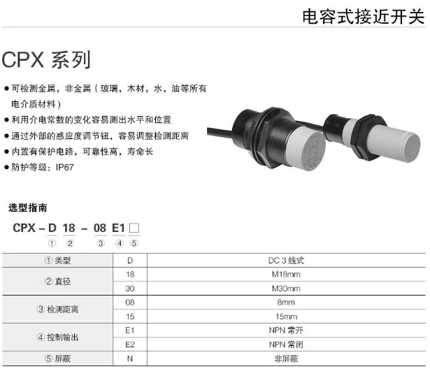 CPX-D18-08E1N,CPX-D30-15E1N,CPX-D18-08E2N,CPX-D30-15E2N,Koino電容式接近開關(guān)