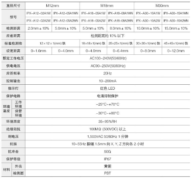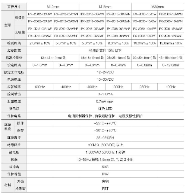 IPX-2D30-10A1W,IPX-A12-02A1W,IPX-A18-05A1W,IPX-A30-15A2WN,Koino圓柱形接近開關(guān)