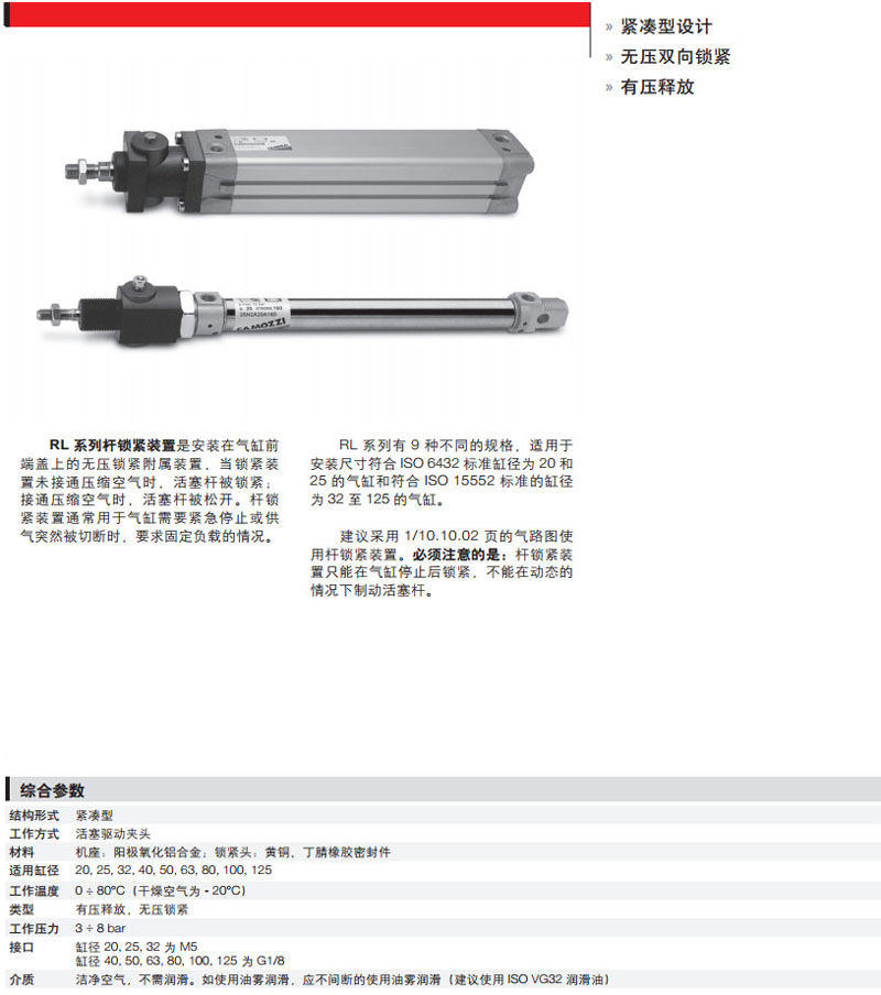 詳細信息 RLC-24-20,RLC-41-25,RLB-24-32,RLB-41-40,RLC-24-50,RLC-41-63,camozzi桿鎖緊裝置