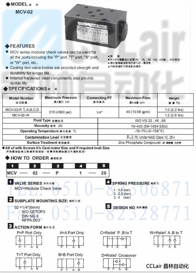 MCV-02-W,MCV-02-A,MCV-02-B,積層型止逆閥,