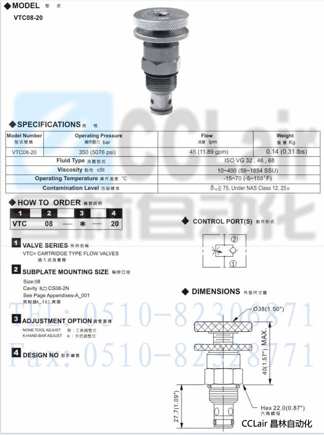 產(chǎn)品: 瀏覽次數(shù):761VTC-08-20,插入式流量閥,