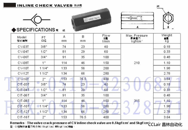 詳細信息 CV-03T,CV-04T,CV-06T,CV-08T,CV-10T,CV-12T,CV-16T,防逆閥,