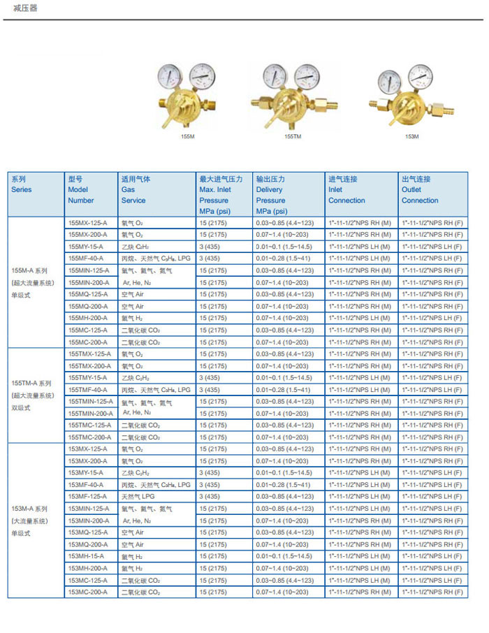 155MX-125-A,155MY-15-A,155MF-40-A,155MIN-125-A,155MQ-200-A,153MH-15-A,減壓器