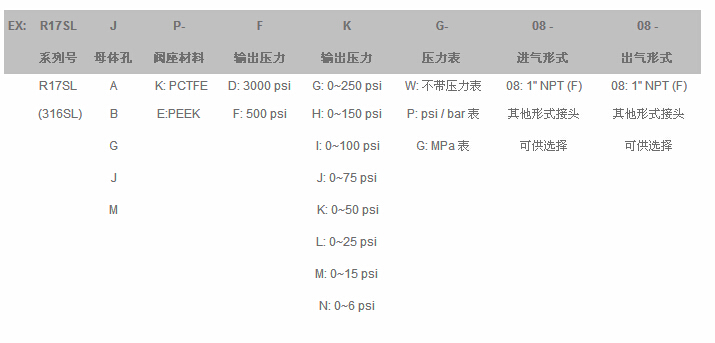 型號: R17SLA,R17SLB,R17SLG,R17SLJ,R17SLM,R17SLBE-FMG-08-08,R17SLAE-FMG-08-08,中等流量減壓器