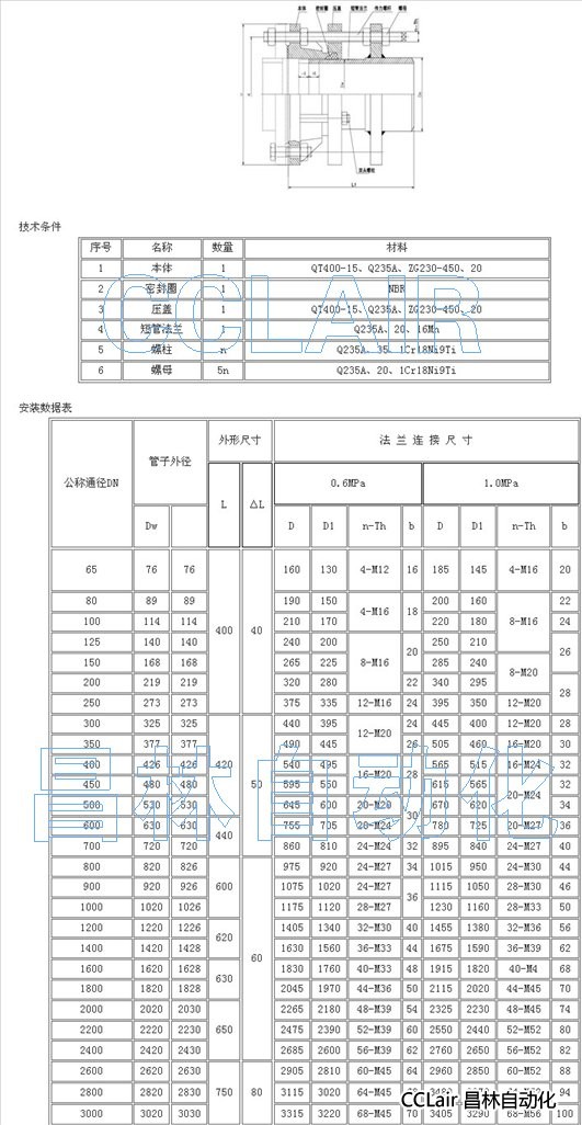 VSSJAFG-DN65,VSSJAFG-DN80,VSSJAFG-DN100,VSSJAFG-DN125,VSSJAFG-DN150,VSSJAFG-DN200,單法蘭傳力接頭