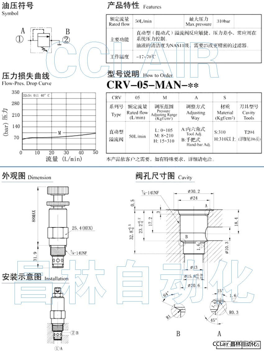 型號: CRV-05-LAN-S,CRV-05-MAN-S,CRV-05-HAN-S,CRV-05-LBN-S,CRV-05-MBN-S,直動溢流閥