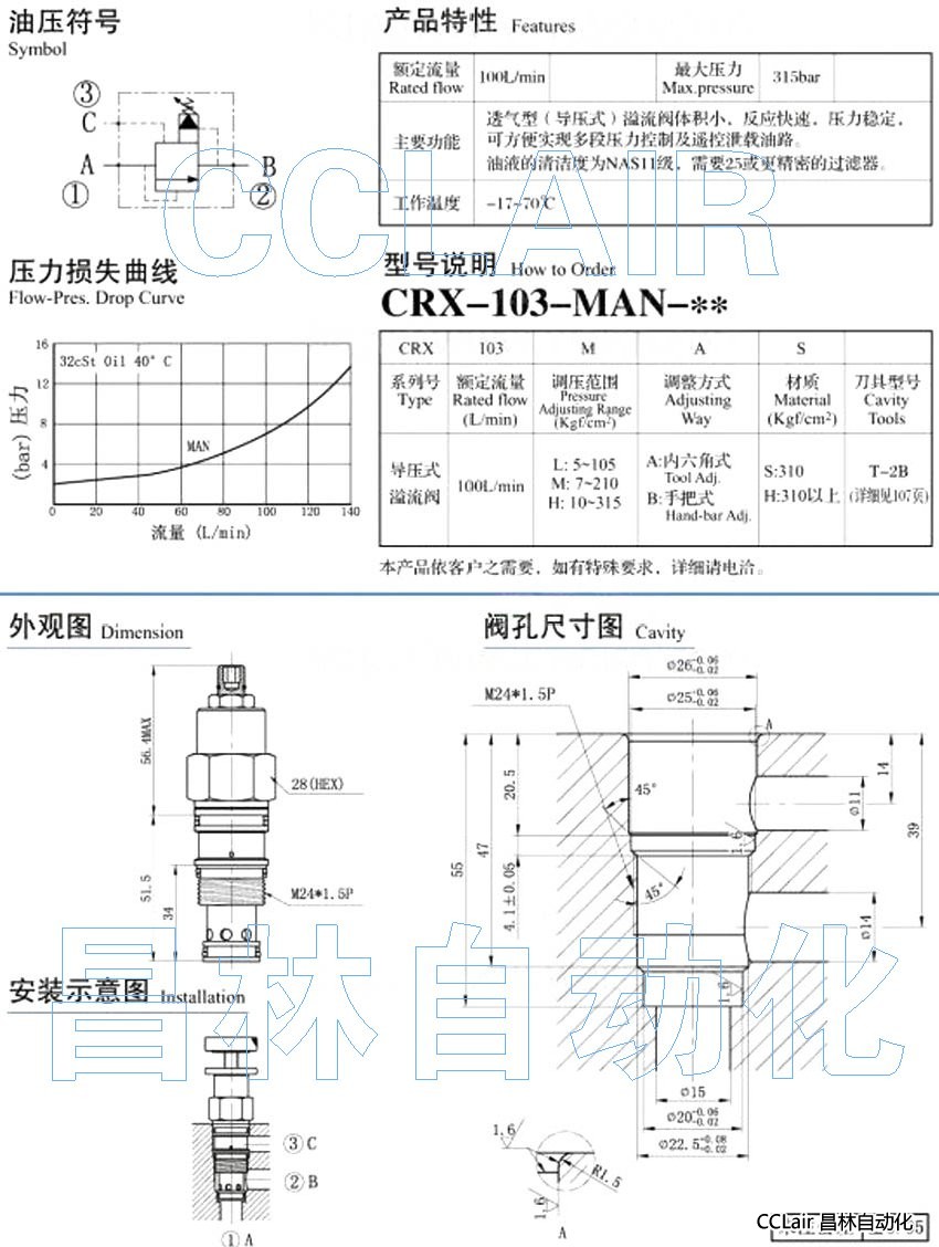 CRX-103-MAN-S,CRX-103-LAN-S,CRX-103-HAN-S,CRX-103-MBN-S,CRX-103-LBN-S,導(dǎo)壓式溢流閥