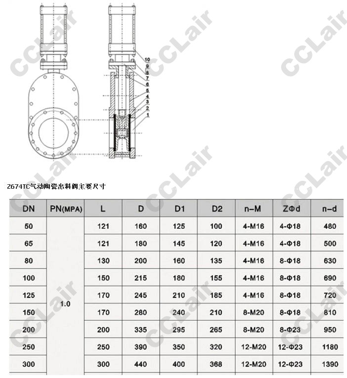 Z674TC-16C-DN50,Z674TC-10C-DN65,Z674TC-16C-DN100,Z674TC-10C-DN125,Z674TC-10C-DN300,氣動(dòng)陶瓷出料閥