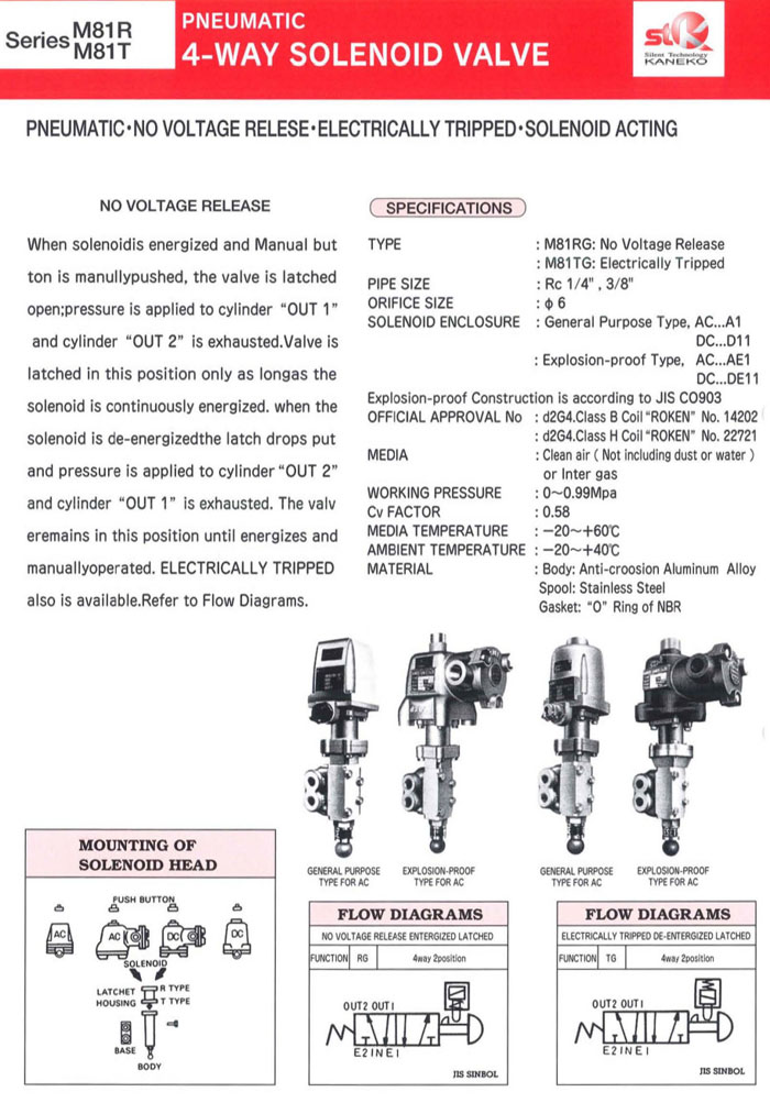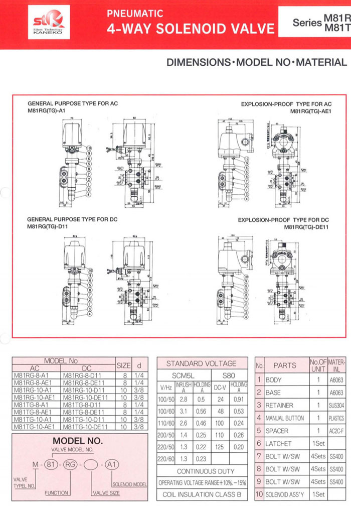 M81RG-8-A1,M81RG-10-A1,M81TG-8-A1,M81TG-10-A1,M81RG-8-D11,KANEKO氣動(dòng)4路電磁閥