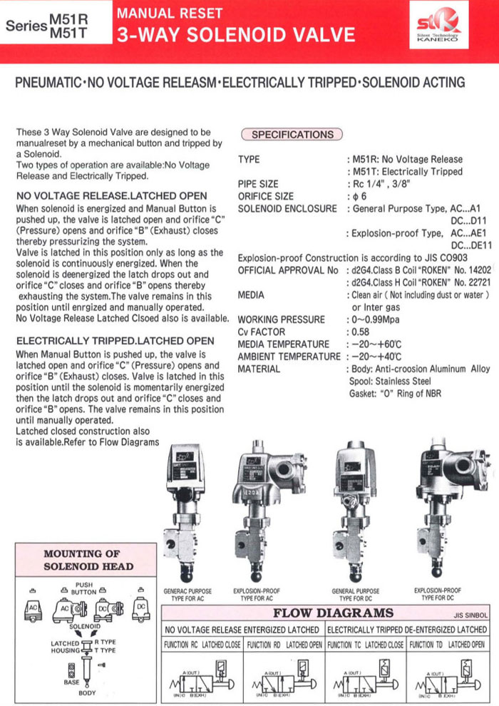 M51RC-8-A1,M51RD-8-A1,M51TC-8-A1,M51TD-8-A1,M51RC-10-A1,M51RD-10-A1,M51TC-10-A1,KANEKO氣動3路電磁閥