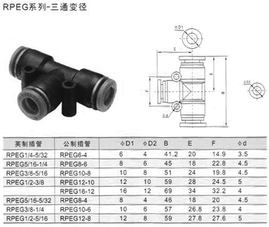 RPEG1/4-5/32,RPEG5/16-1/4,RPEG3/8-5/16,RPEG6-4,RPEG8-6,RPEG10-8,三通變徑接頭