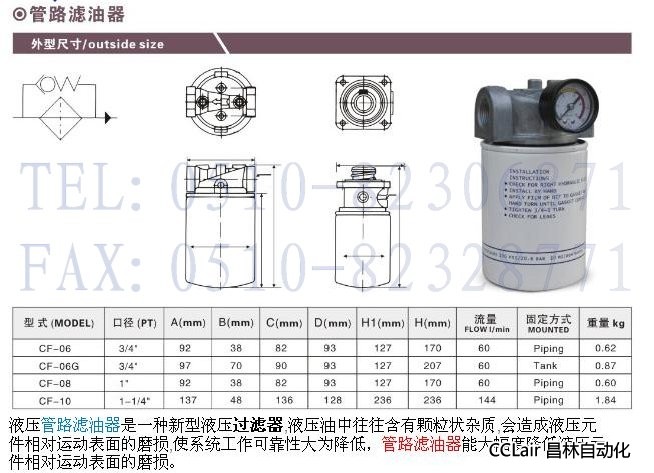 CF-06,CF-06G,CF-08,CF-10,管路濾油器