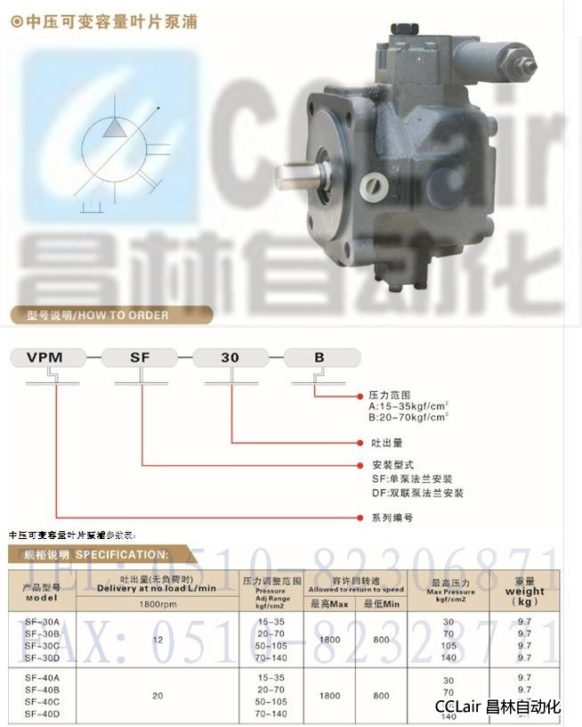 VPM-SF-40-A,VPM-SF-40-B,VPM-SF-40-C,VPM-SF-40-D,中壓可變?nèi)萘咳~片泵浦