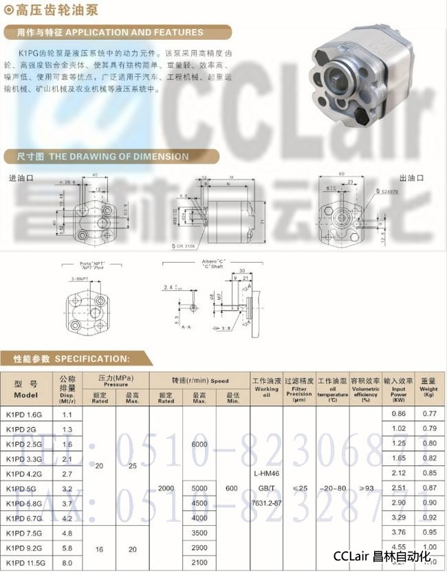 K1PD 1.6G,K1PD 2G,K1PD 2.5G,K1PD 3.3G,高壓齒輪油泵