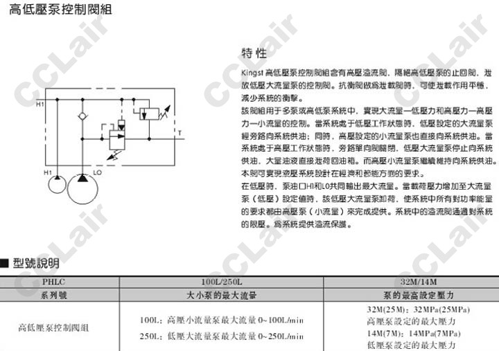 PHLC-100L-32M,PHLC-250L-32M,PHLC-100L-14M,PHLC-250L-14M,高低壓泵控制閥組