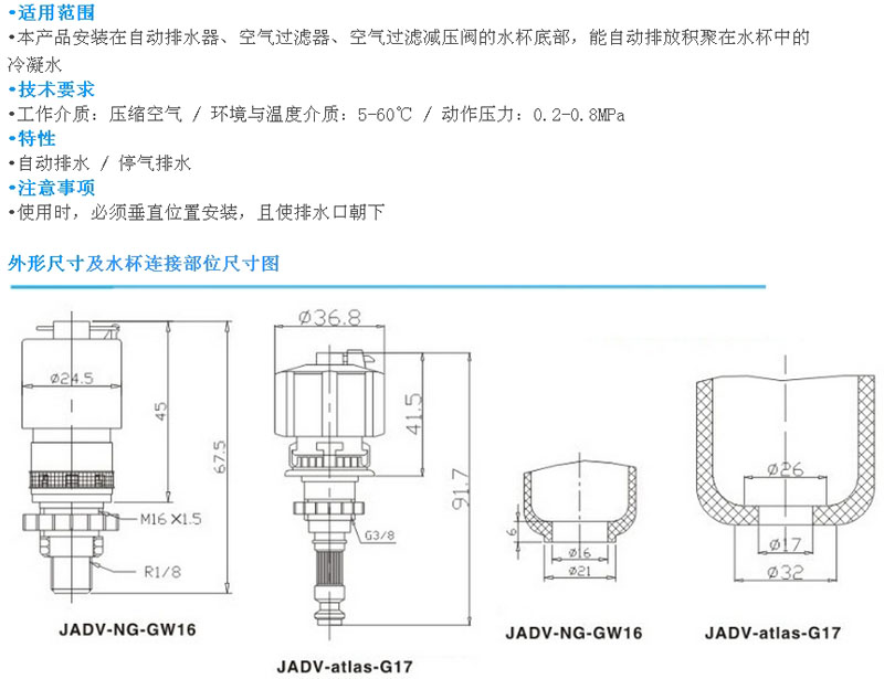 詳細(xì)信息 JADV-NG-GW16,JADV-atlas-G17,自動(dòng)排水器