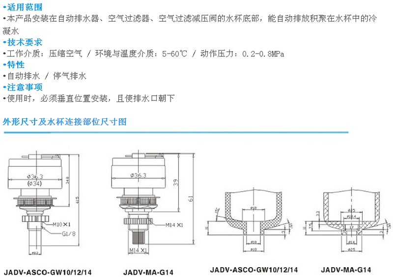 詳細(xì)信息 JADV-ASCO-GW10,JADV-ASCO-GW12,JADV-ASCO-GW14,自動排水器
