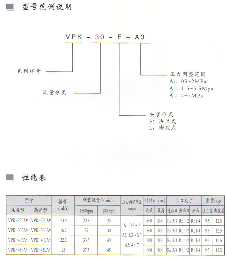 VPK-25FA1,VPK-30FA2,VPK-40FA2,VPK-45FA3,VPK-25LA3,VPK-25LA1,變量葉片泵