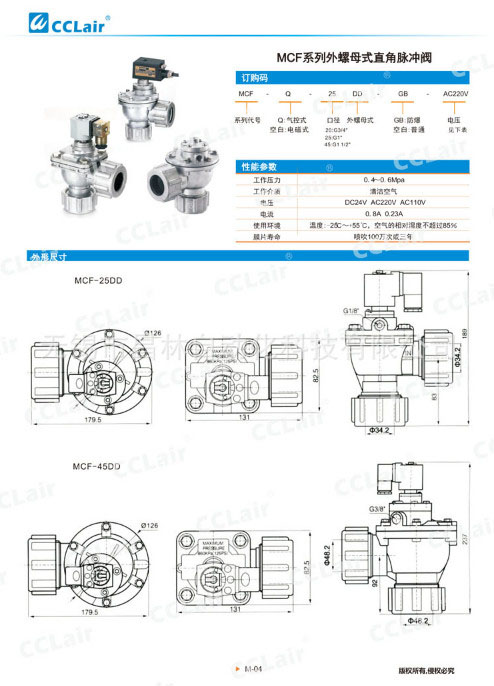 M外螺母式直角脈沖閥CF-20DD,MCF-25DD,MCF-45DD,