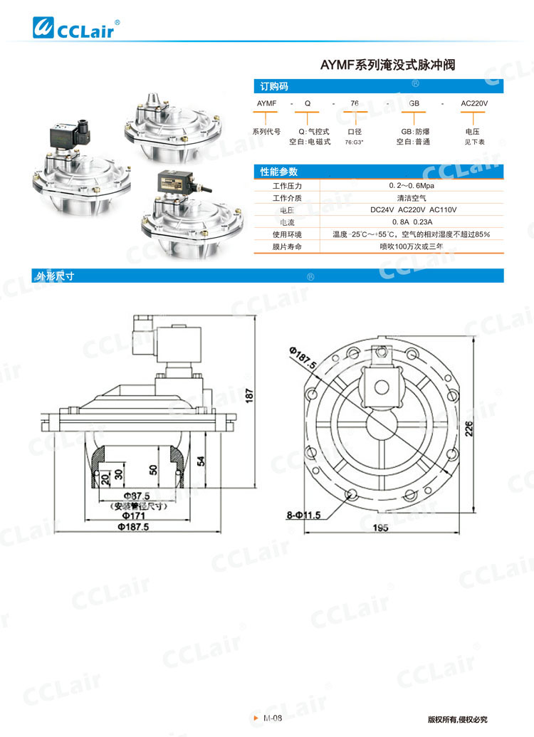 詳細信息 淹沒式脈沖閥YMF-50,YMF-62,YMF-76,YMF-102,