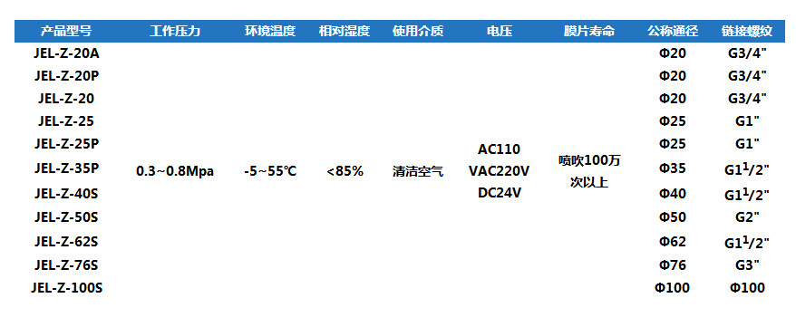 詳細信息 直角式脈沖閥JEL-Z-20,JEL-Z-25,JEL-Z-40S,JEL-Z-50S,JEL-Z-62S,JEL-Z-76S,