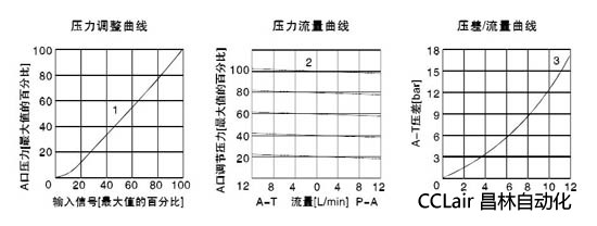 注:,二流量在1 L/min時(shí)測(cè)得的壓力調(diào)整曲線;2二流量在1 L/min時(shí)使輸入信號(hào)進(jìn)行變化測(cè)得;