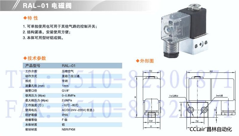 產(chǎn)品: 瀏覽次數(shù):565RAL-01,直動二位三通電磁閥